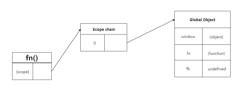 1、最外层就是整个全局作用域,其中只有两个标识符: fn, fb。