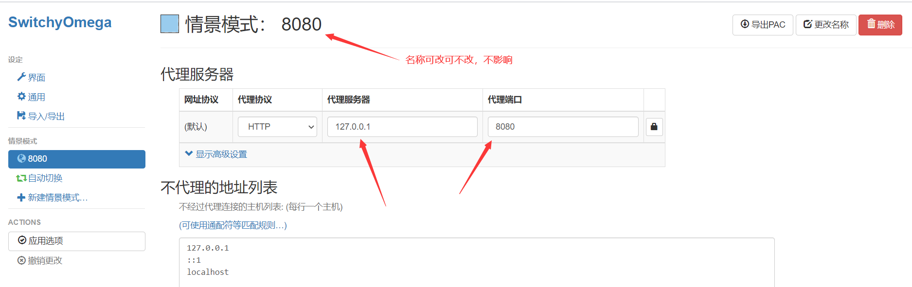 2. 对SwitchySharp进行配置,使其能对HTTP,HTTPS进行抓包,配置代理服务器及端口与burpsuite中一致。