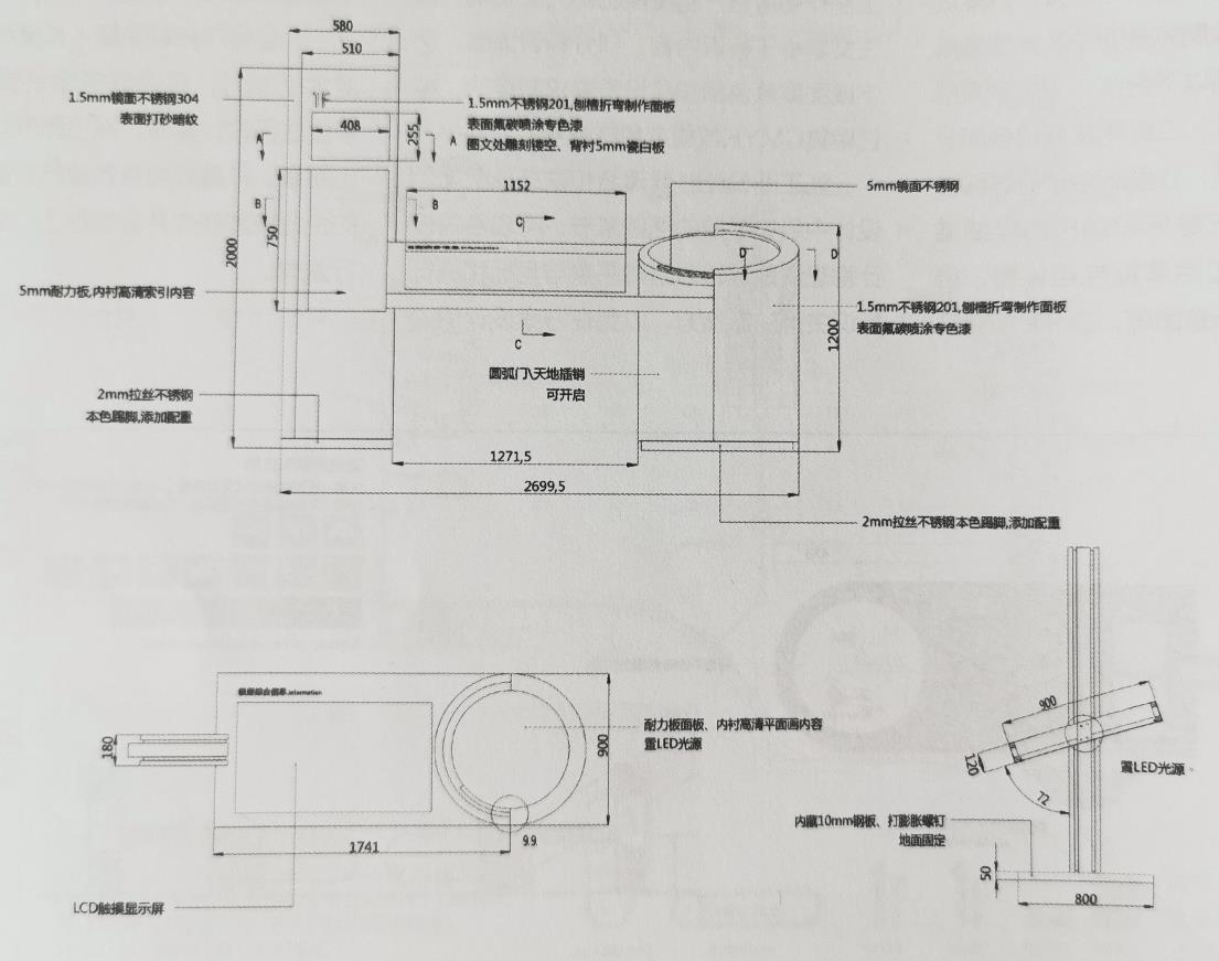 对建设方认可的发光字设计方案进行施工图绘制,绘制完整的生产制造及施工图纸,主要包括以下内容: