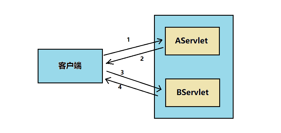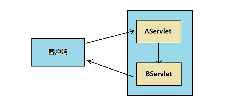 | 下图是请求转发的流程,最后返给客户端的response只是BServlet的,而AServlet的响应不会在客户端显示出来。 |
