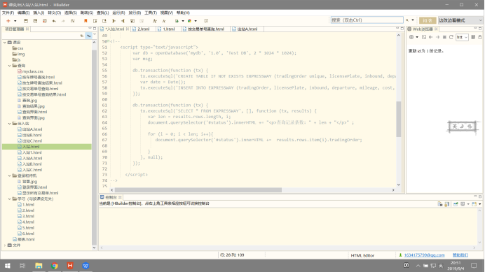1、运用HTML WEB SQL技术完成出入站页面和出站页面添加记录