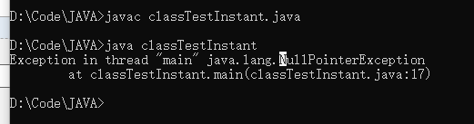 class Book { String title; double price; public void printinfo() { System.out.println("title:"+this.title); System.out.println("price:"+this.price); } } public class classTestInstant { public static void main(String args[]) { Book book = null; book.title = "JAVA程序设计"; //空指针 book.price = 39.8; book.printinfo(); } }