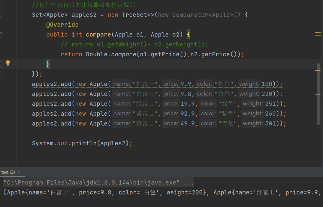 TreeSet类需要实现Comparable<E>的compareTo方法并且重写指定规则