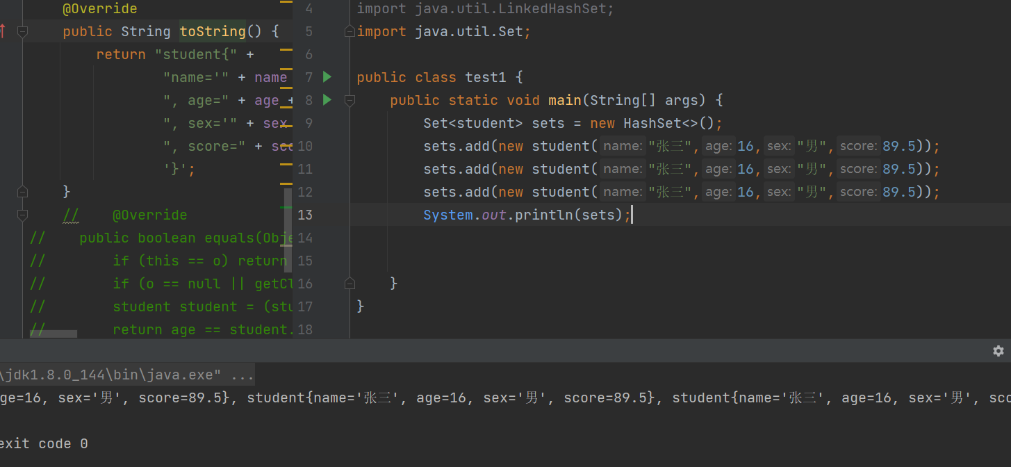 只有重写了equals方法和hashcode方法才能保证,约定我们认为内容一样,及时他们的hash值不一样,也是一样的对象。