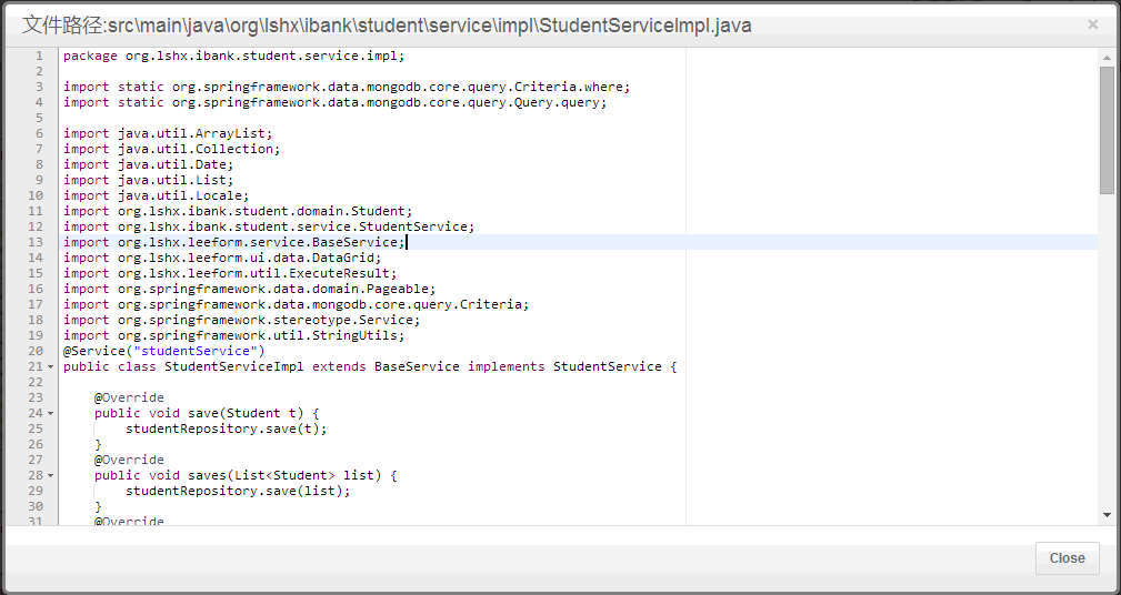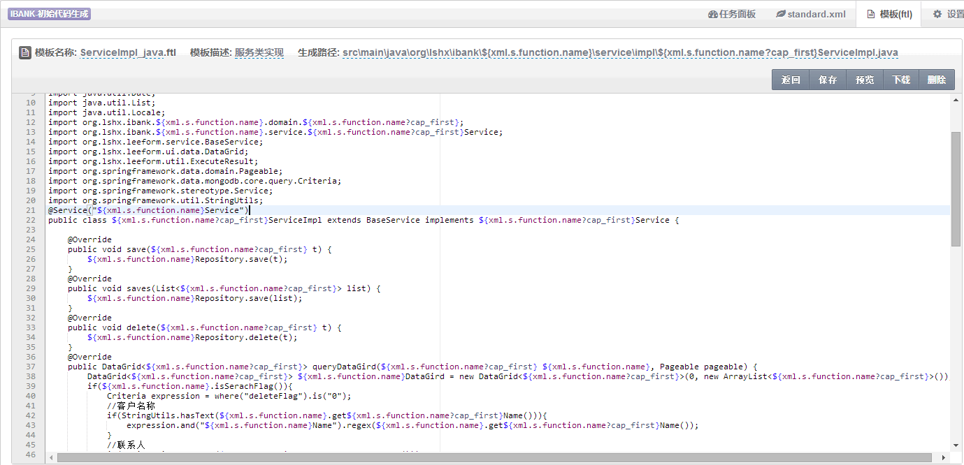 下面是模板文件,service层模板文件。(可以在线编辑源码)