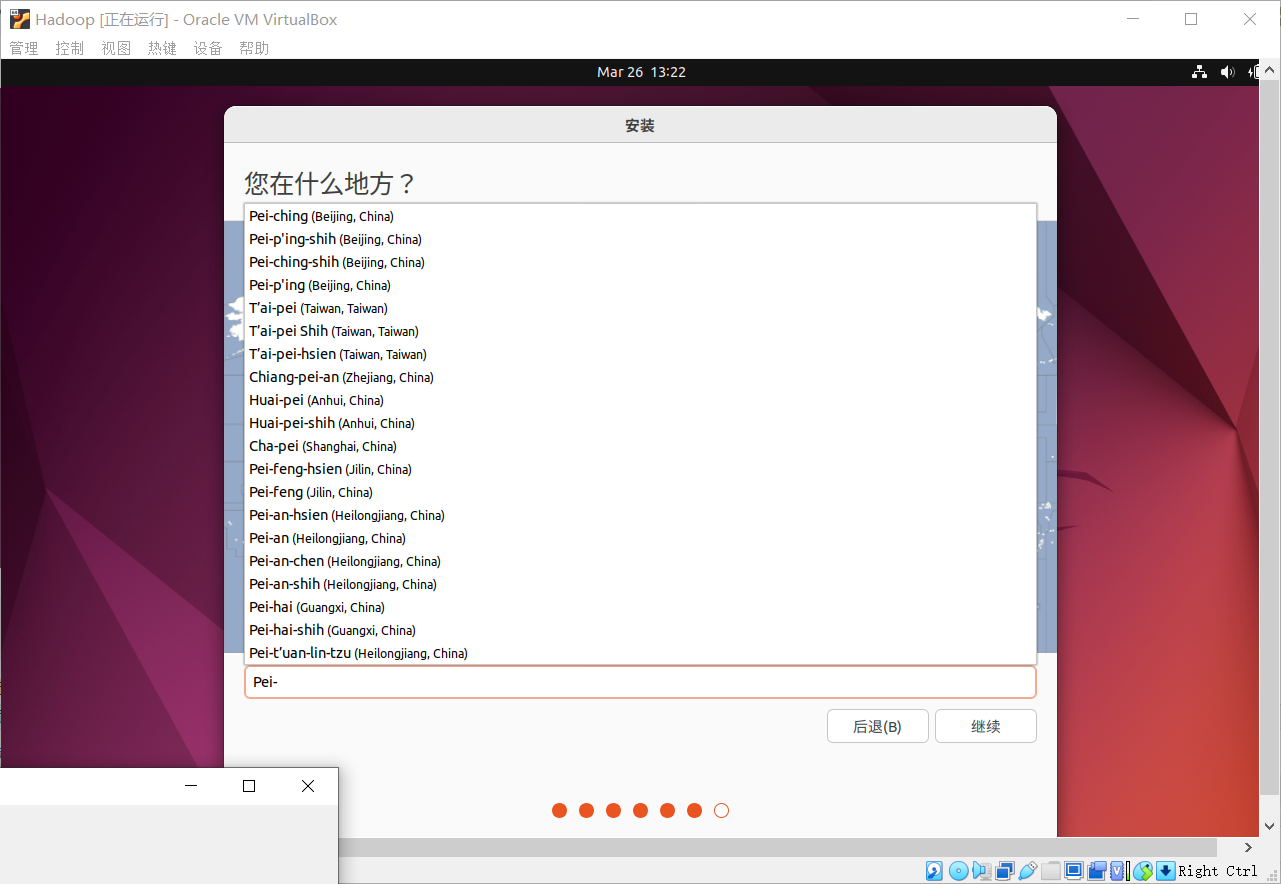 点击继续,清理整个磁盘并安装Ubuntun,时间选择pei-ching