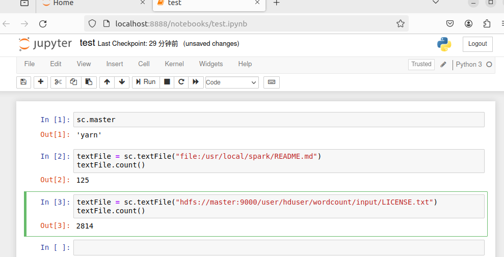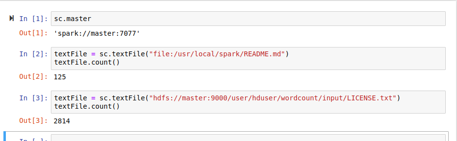 输入:PYSPARK_DRIVER_PYTHON=ipython PYSPARK_DRIVER_PYTHON_OPTS="notebook" HADOOP_CONF_DIR=/usr/local/hadoop/etc/hadoop MASTER=yarn-client pyspark