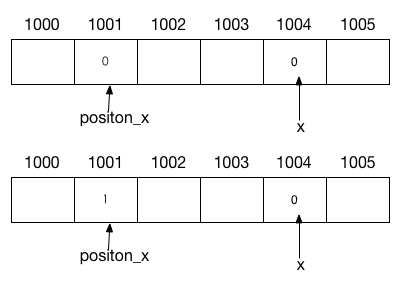 你希望执行go_forward()函数后x,y坐标都+1,输出为(1,1),但是结果还是(0,0)原因为C语言调用函数的方式是按值传递参数,以x参数为例,刚开始main函数中有一个x的局部变量,值为0,当计算机调用go_forward()函数时,它将变量x的值复制给了参数position_x,这只是一个赋值过程将变量x赋值给变量position_x,相当于 position_x=x 命令,而这个命令,x的值是不发生变化的,结果如下图所示,x的值仍为0,position_x的值变为1。