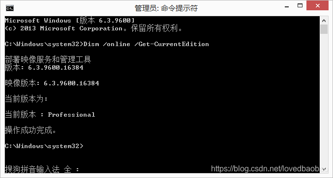 查看映像版本/当前版本:Dism /online /Get-CurrentEdition