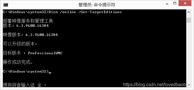 查看当前系统是否可升级,以及可升级版本:Dism /online /Get-TargetEditions