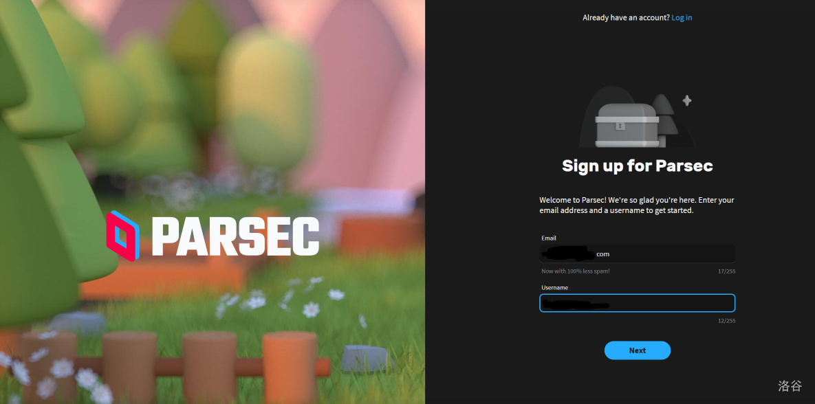 进行注册(点击注册会打开默认浏览器,需要等待一会儿;当然也可以最开始在官网的时候直接注册)下面是注册步骤:- 首先输入邮箱和用户名(建议使用QQ邮箱,方便验证,当然别的也可以),点击下一步