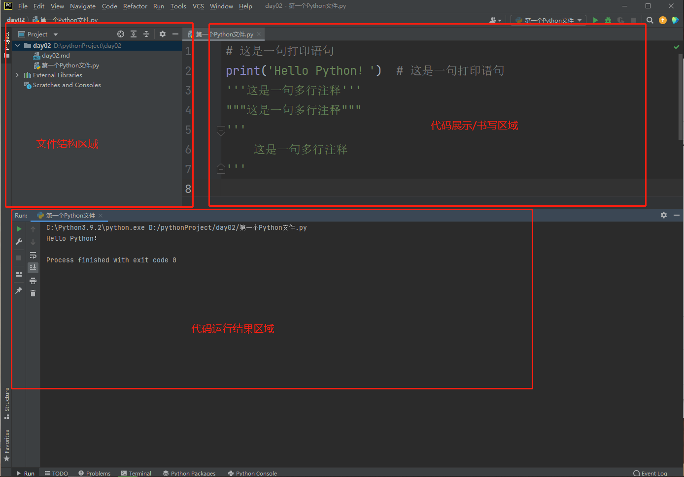 注释:代码功能的解释说明(不执行,为了提示使用者)