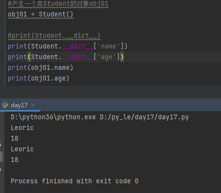 类中定义的'变量/函数'可以共享给所有该类产生的对象使用。 对象访问时,会先从自己的名称空间查找自身独有元素,未找到则去类的名称空间查找共有元素。 #访问方法 1.类名.__dict__['属性名'] 2.类名/对象名.数据名 类名/对象名.功能名()