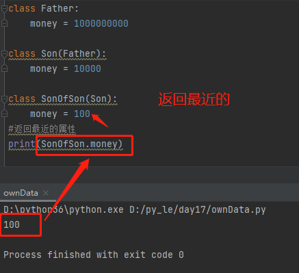 1.父类的概念 多个类相同的数据和功能的结合体 2.继承 一个类可以继承多个父类从而获得多个父类的属性 #语法 class 类名(父类名): 独有属性 或者 class 类名(父类名1,父类名2,...): 独有属性 3.对象属性的查找顺序 自身名称空间 ---> 产生该对象的类 ---> 该类的父类