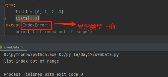 异常类型正确,处理对应类型的异常