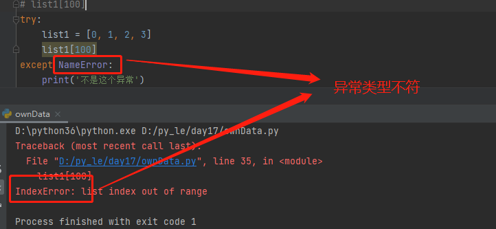 异常类型错误,不会处理不符合的异常