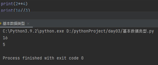 # 算术运算符 加减乘除省略 ** 幂运算 // 整除 print(2**4) print(16//3)