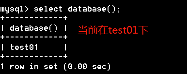 对表进行操作要先知道当前表属于哪个库 1.查看当前表在哪个库下 select database(); 2.切换当前数据库 use test01