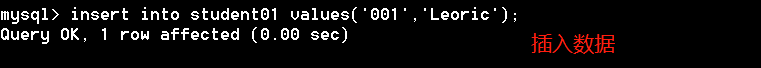 # 增加记录 1.插入记录(给表中每个字段都赋值) insert into student01 values('001','Leoric'); 2.一次插入多条记录 insert into student01 values('002','Leo'),('003','Ace');