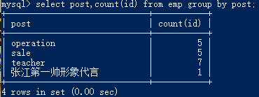 select post,count(id) from emp group by post;