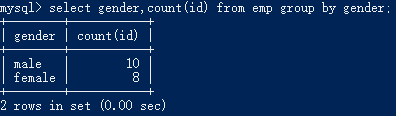select gender,count(id) from emp group by gender;