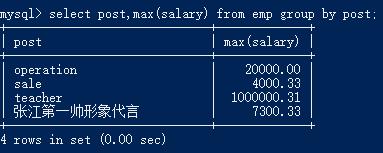 select post,max(salary) from emp group by post;