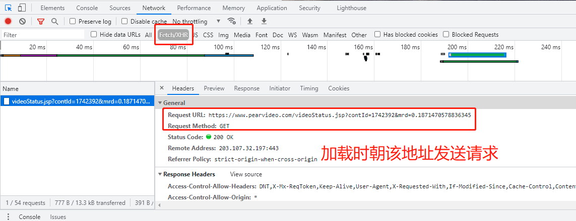 1、经过观察发现,对于每一个视频只有发送请求是携带的视频编号不一样,主要地址是一样的