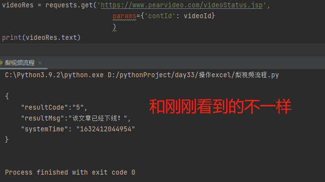 虚假的地址:https://video.pearvideo.com/mp4/short/20210923/1632414141772-15772830-hd.mp4