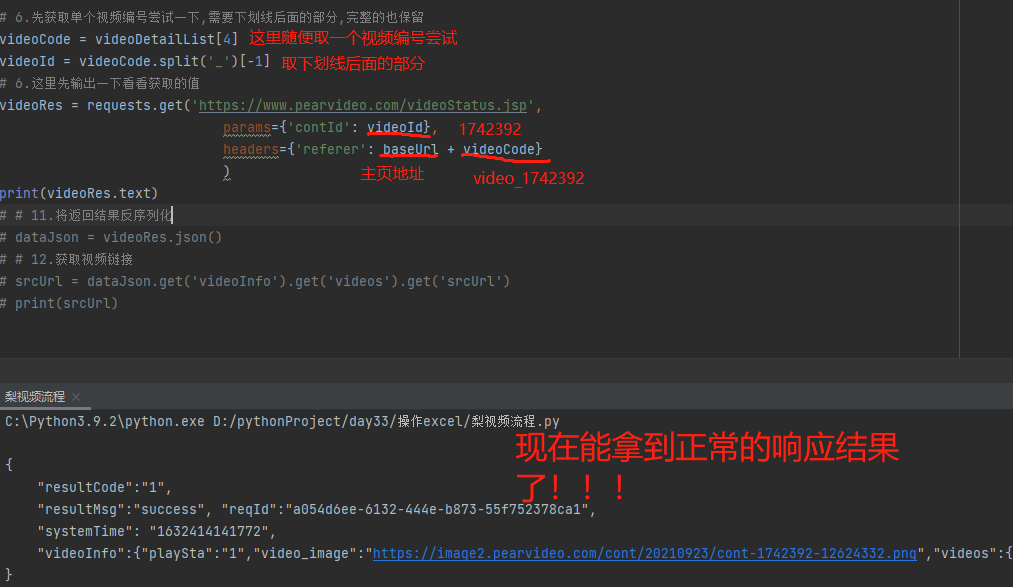 10、对的,我们接收到的响应中,视频编号部分是被系统时间替换过的,只需要在代码中将其换回即可