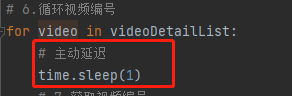 4、接着,为了避免访问次数过多,需要在循环内加入主动延迟,而且需要将视频保存至本地文件中