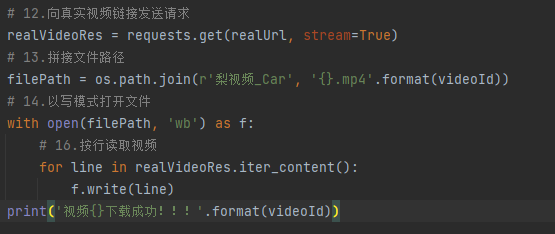 5、再将整个发送网络请求获取视频数据最后保存的代码段封装成函数以便使用,参数为请求中的起始位置