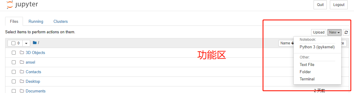 打开的界面取决于终端输入jupyer notebook命令的左侧路径