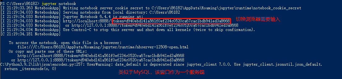 调用非默认浏览器访问地址需要输入token值,启动服务的展示信息中有token值