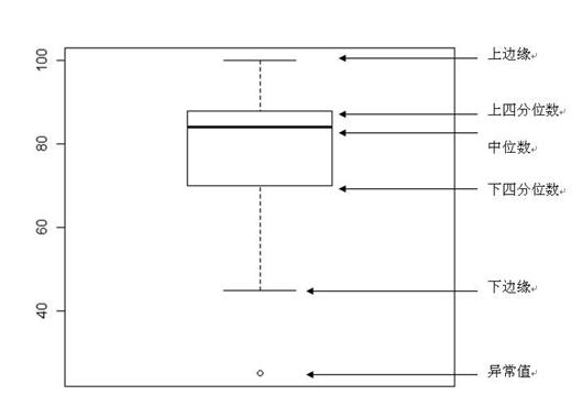 箱线图是另一种体现数据分布的图形,通过该图可以得知数据的下须值(Q1-1.5IQR)、下四分位数(Q1)、中位数(Q2)、均值、上四分位(Q3)数和上须值(Q3+1.5IQR)。