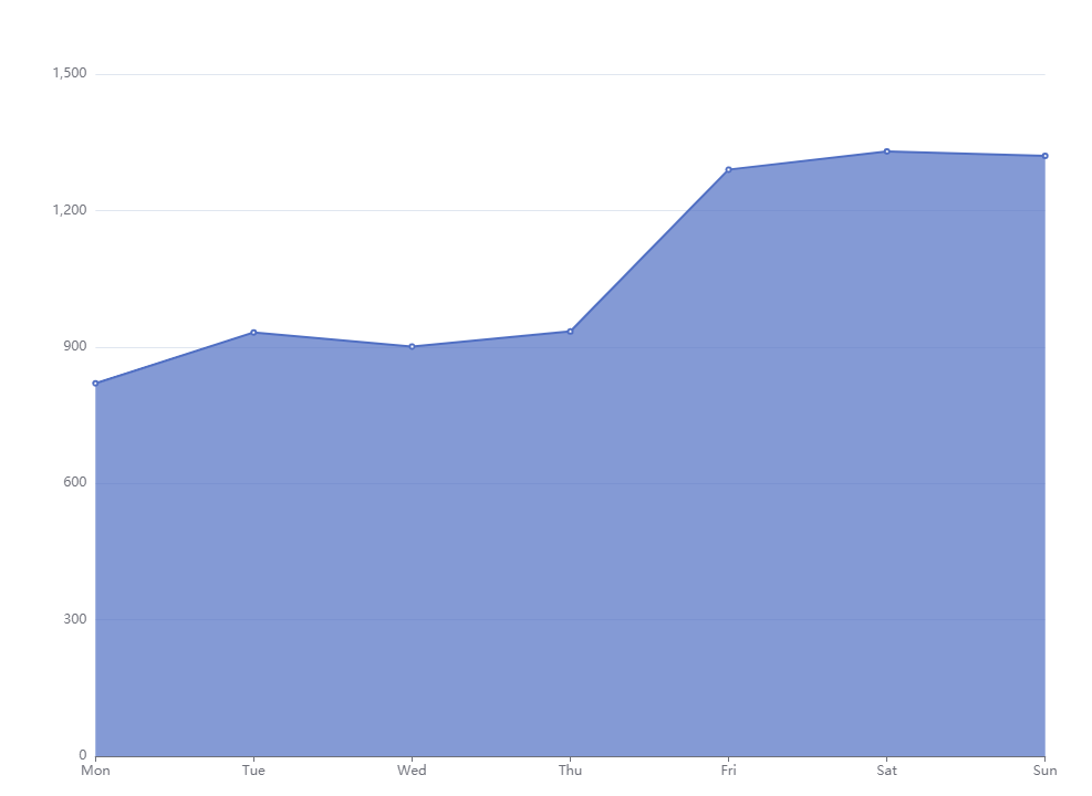 面积图,或称区域图,是一种随有序变量的变化,反映数值变化的统计图表,原理与折线图相似。而面积图的特点在于,折线与自变量坐标轴之间的区域,会由颜色或者纹理填充。