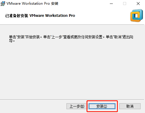 5、点击安装开始安装VM虚拟机软件,等待安装程序的执行即可