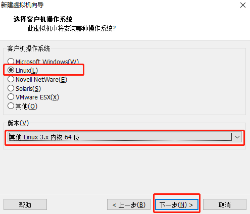11、勾选Linux,下拉框选择其他 Linux 3.x 内核 64位(根据需要而定)