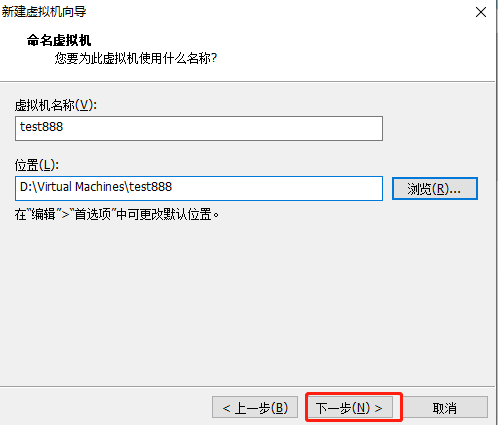 12、输入虚拟机名称并选择位置(还是不要放在C盘)然后点击下一步