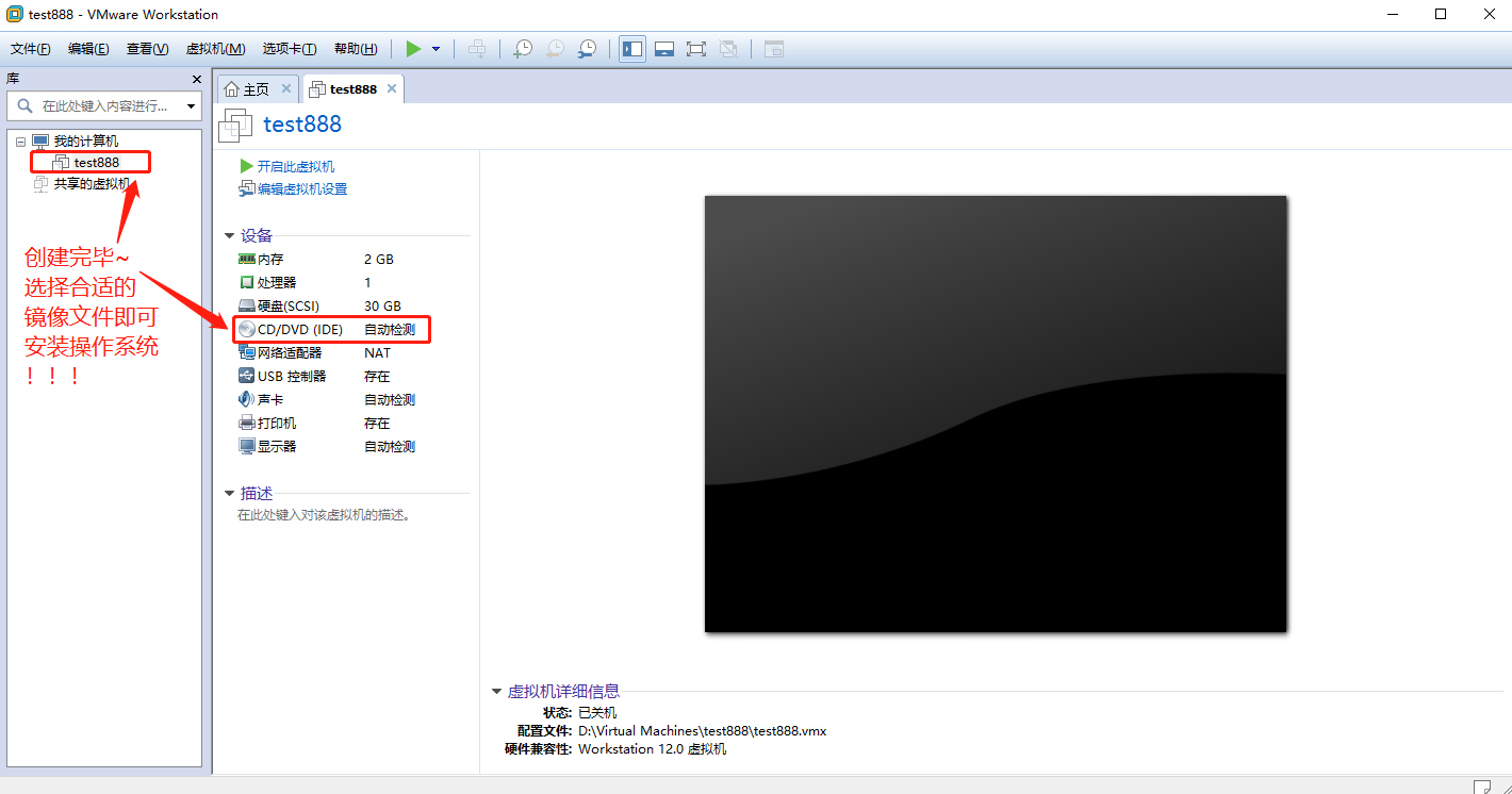 21、虚拟机创建完毕,选择合适的镜像文件即可安装操作系统