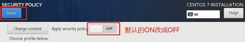11、点击SECURITY POLICY,将Apply security policy后的默认的ON改成OFF,点击Done