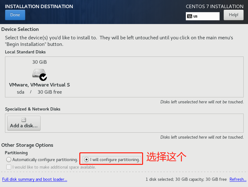 12、点击INSTALLATION DESTINATION,选择手动拆分