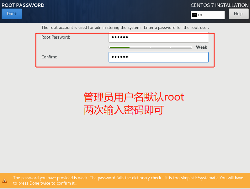 16、安装前配置管理员以及普通用户信息,需要点击Done