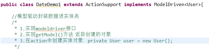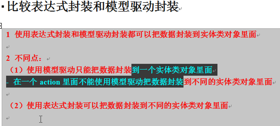 如在同一个action中,不能同时使用属性封装和模型驱动封装,如果都用了,只会modeldriver会得到值。
