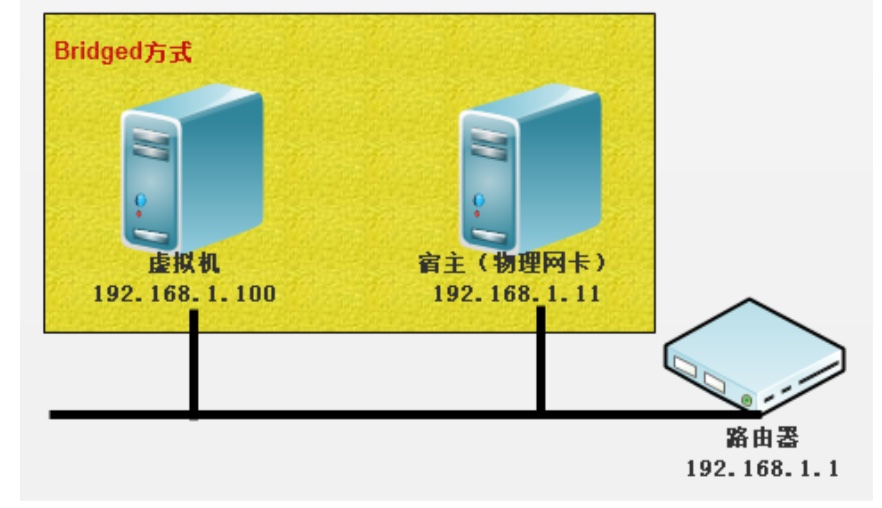 桥接模式可以简单理解为通过物理主机网卡架设了一座桥,从而连入到了实际的网络中。