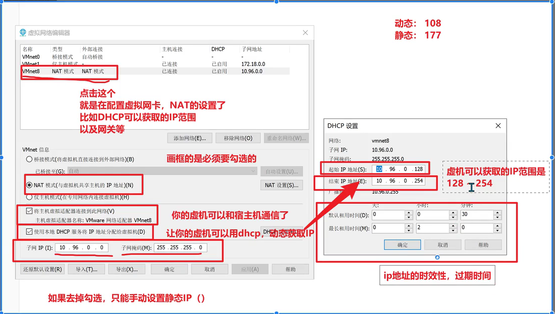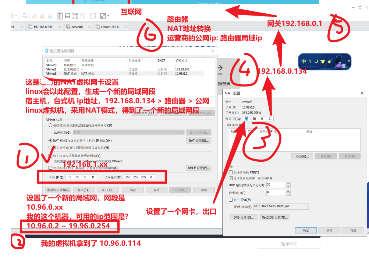 2 虚拟机找虚拟网卡vmnet8,vmnet8是网关,其ip为10.96.0.2 。