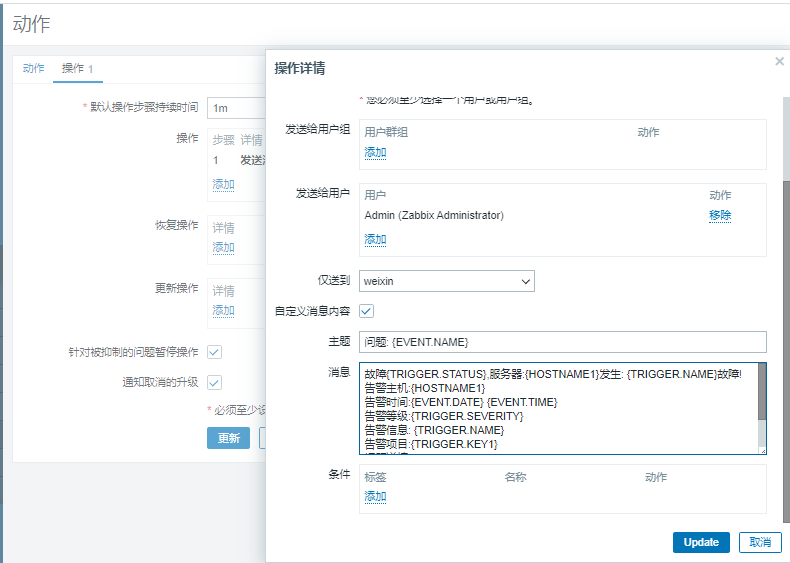 7、给用户添加报警媒介,收件人是企业微信的账号名(英文的)