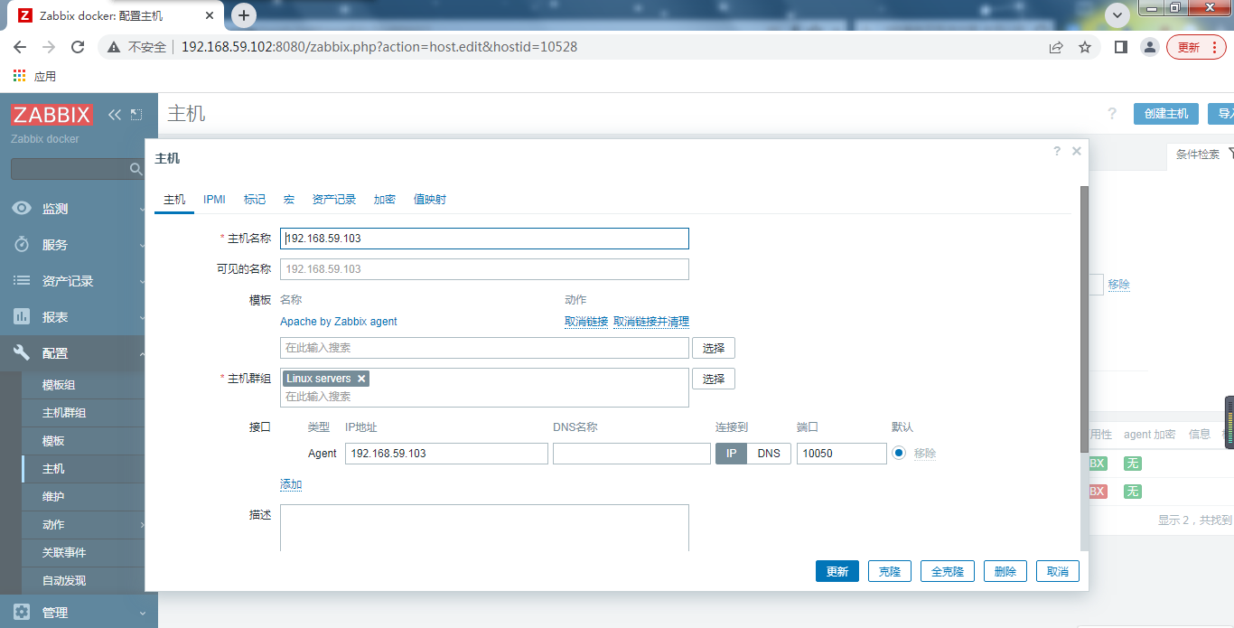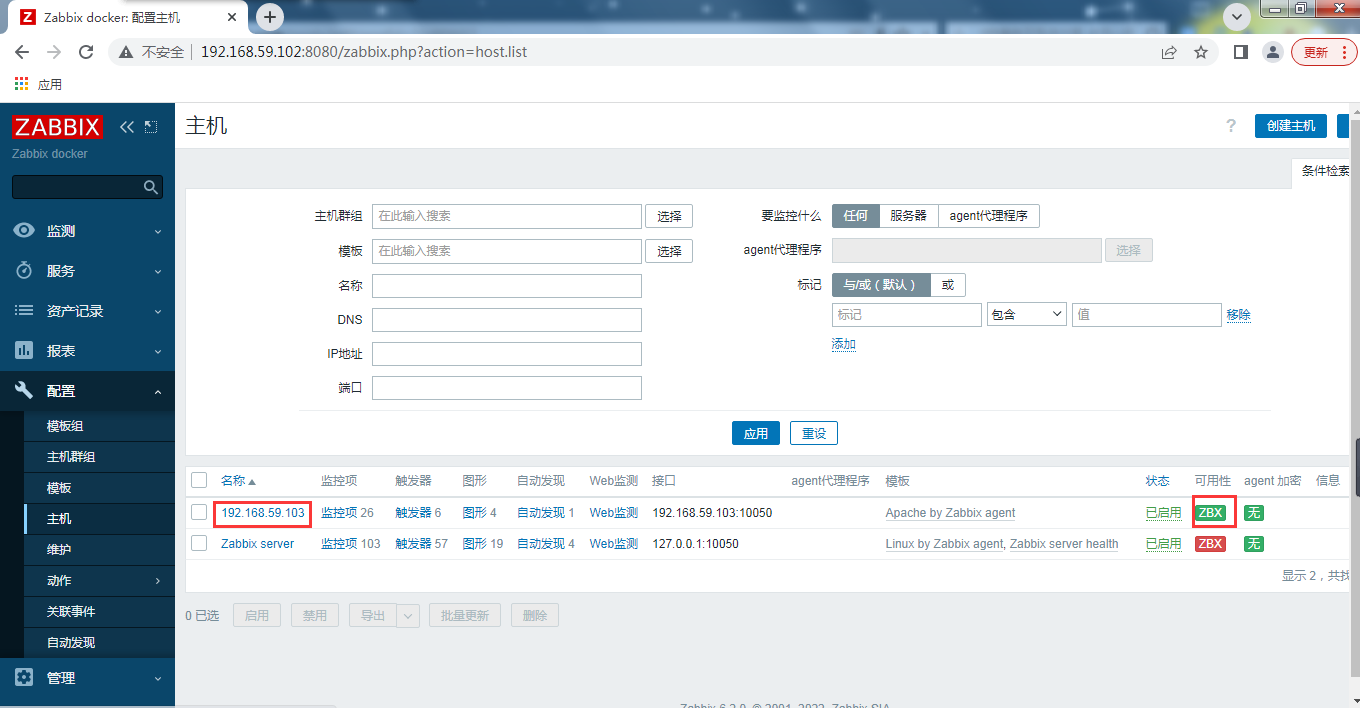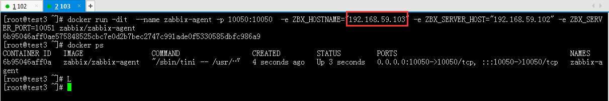 #docker run -dit --name zabbix-agent -p 10050:10050 -e ZBX_HOSTNAME="192.168.59.103" -e ZBX_SERVER_HOST="192.168.59.102" -e ZBX_SERVER_PORT=10051 zabbix/zabbix-agent