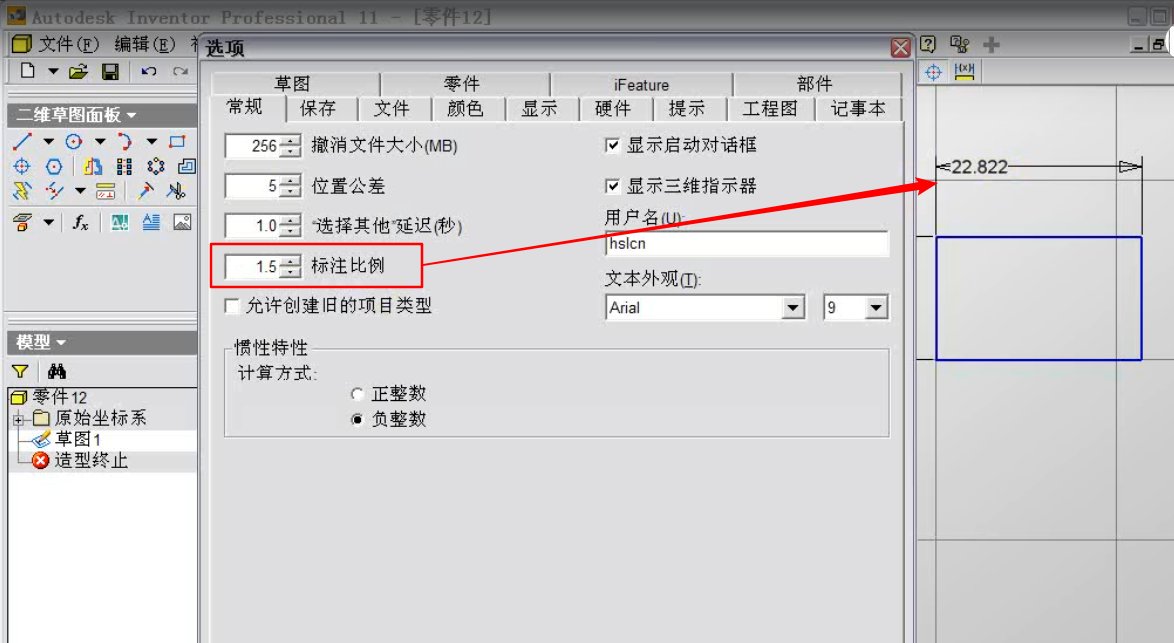 inventor允许在同一个草图内,有不同量纲的驱动尺寸。mm 毫米 in 英寸