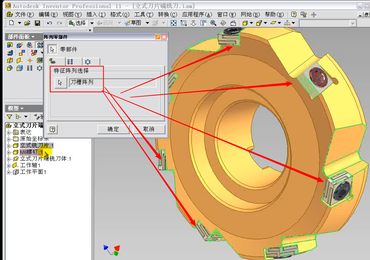 装配体中阵列:选择零部件后,如果是跟随已经存在的阵列,要选择“特征阵