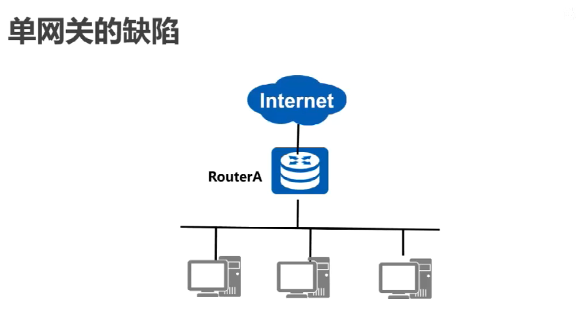 当网关路由器 Router 出现故障时,本网段以该设备为网关的主机都不能与 internet通信